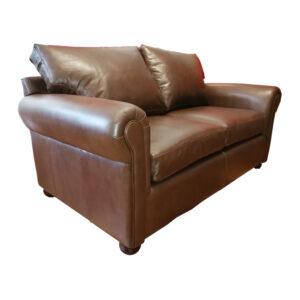 Sofá fabricado íntegramente en cuero, respaldo y asiento con cojines. Variedad de medidas y medidas especiales.