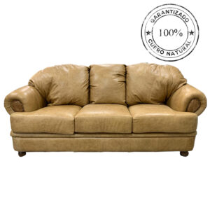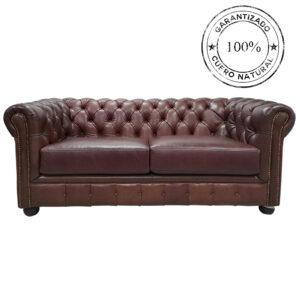 Sofá clásico tapizado en cuero en un 100%, con estructura de madera seca. Respaldo y asiento relleno con espuma de la mejor calidad.