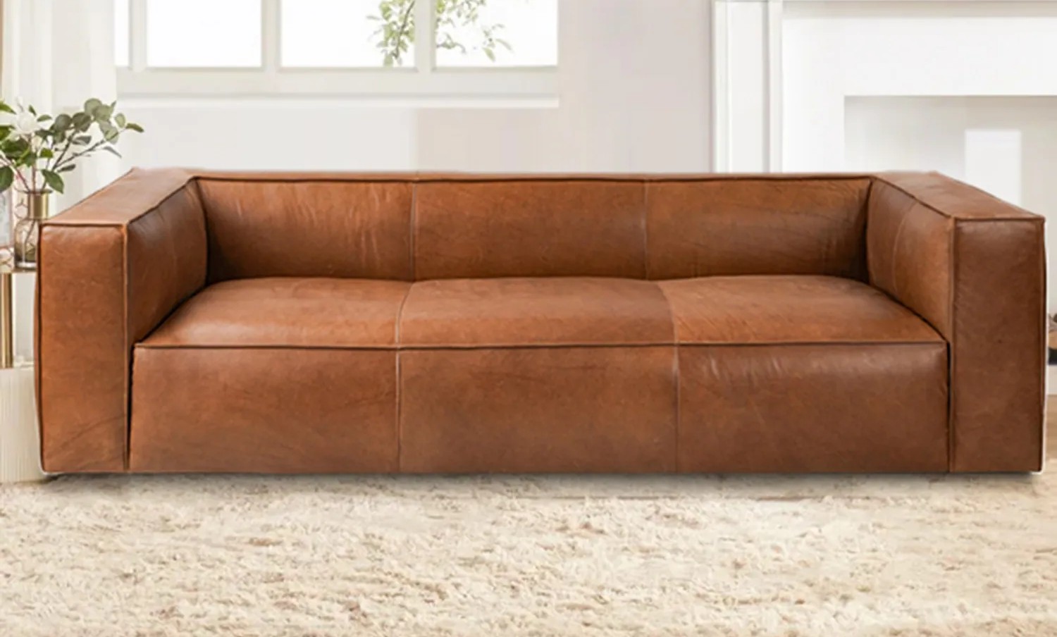 El sofá Sicilia es un diseño clásico fabricado con madera recuperada seca y tapizado íntegramente en cuero