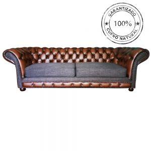 Sofá clásico tapizado en cuero en un 100%, con estructura de madera seca. Respaldo y asiento relleno con espuma de la mejor calidad.