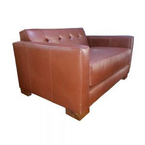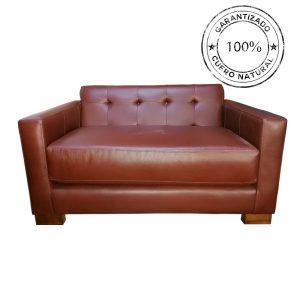 Sofá fabricado íntegramente en cuero, respaldo en capitoné y asiento con cojines.