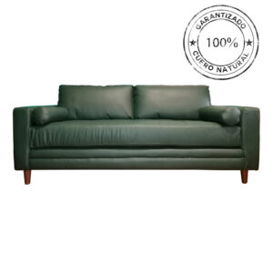 Sofá fabricado íntegramente en cuero, respaldo y asiento con cojines. Variedad de medidas y medidas especiales.