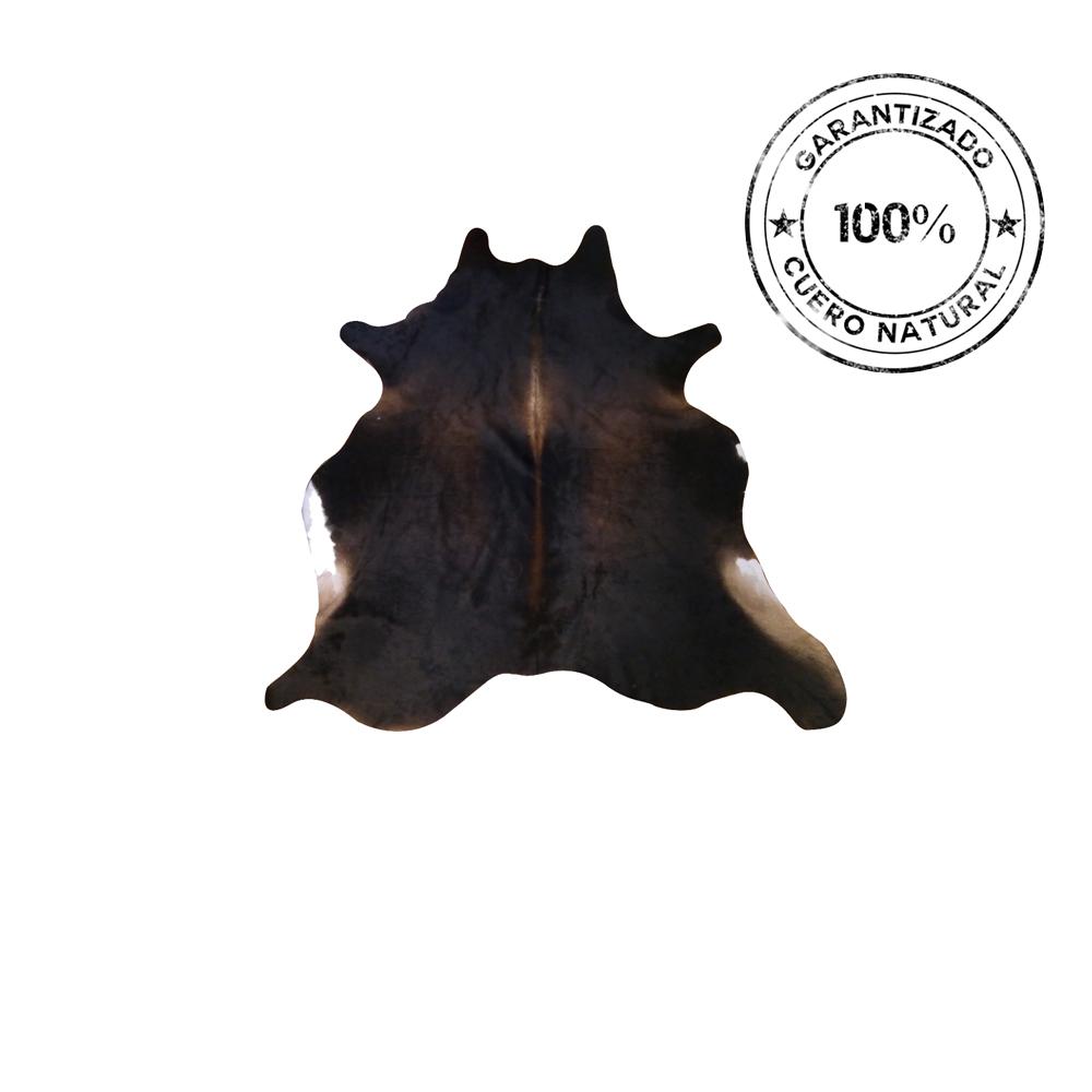 Alfombra de piel con diseño natural liso de color café con manchas blancas.