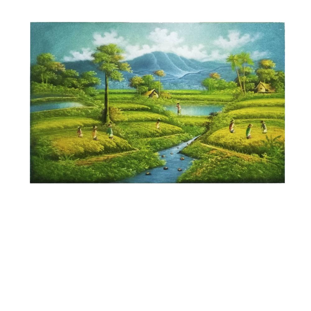 Cuadro original pintado al óleo y acrílico sobre tela con motivo original de siembra de arroz.