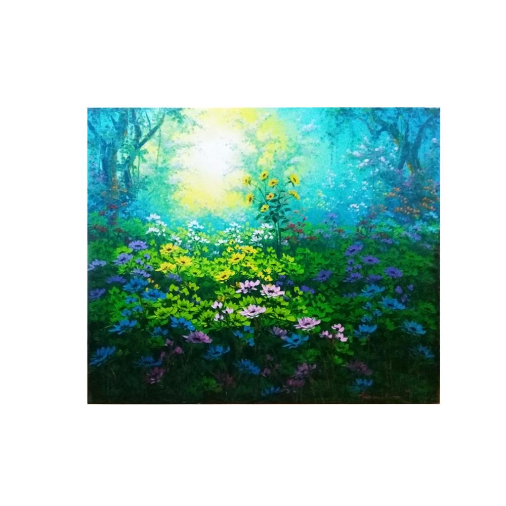 Cuadro original pintado con técnica de oleo y acrílico sobre tela con motivo original Bosque encantado.Medidas: