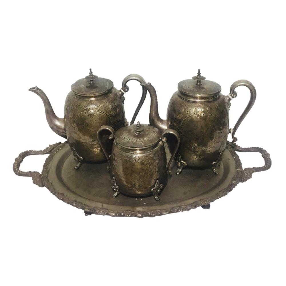Antiguo juego de té de plaque con su bandeja de los años 20 para decoración
