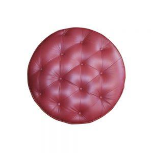 Puff de cuero con tapiz estilo capitoné. Estructura de madera natural.