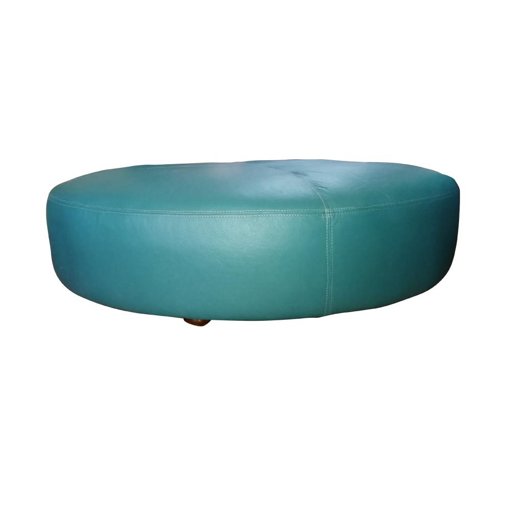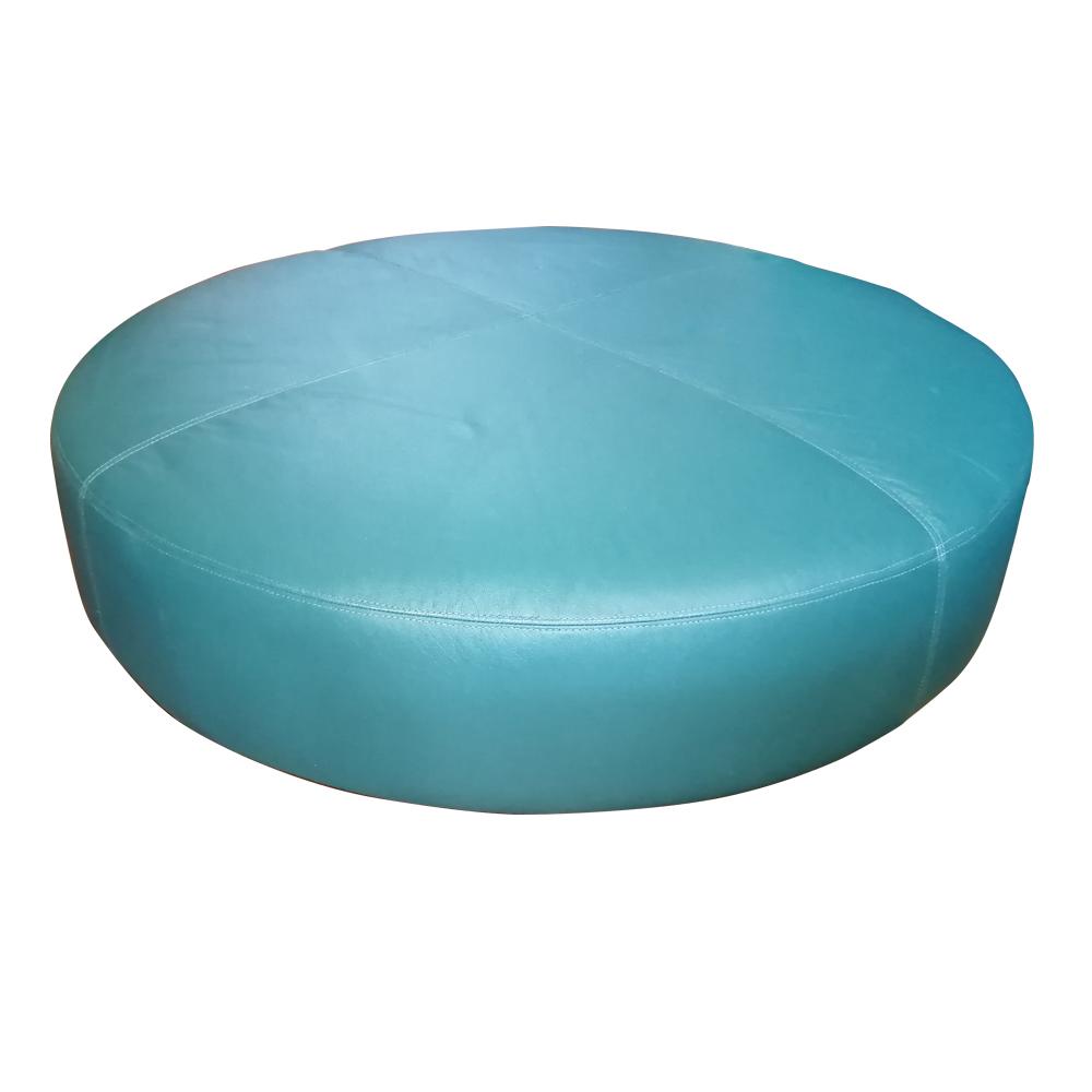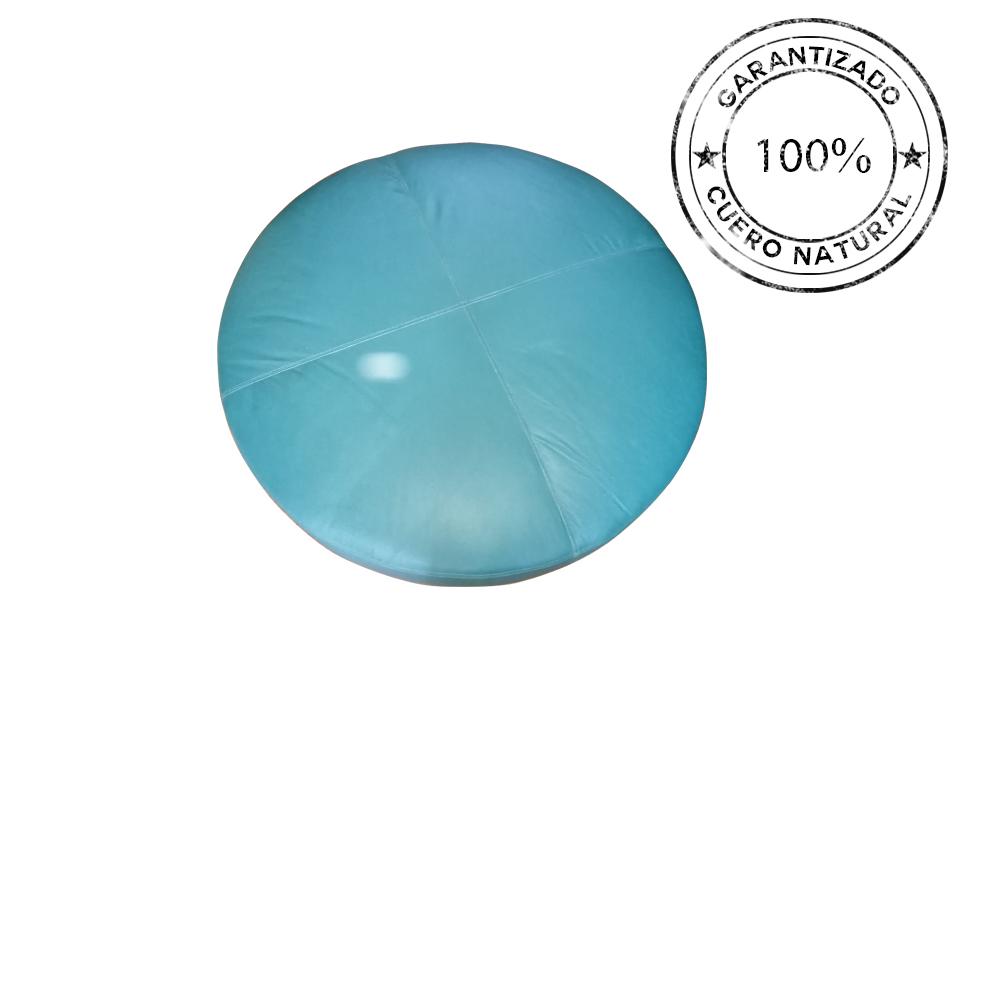 Puff de cuero con tapiz de cuero natural.