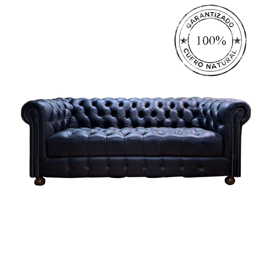 Chase Long fabricado con estructura de madera de aCastaño, reforzada y con huinchas. Relleno con espuma de alta densidad y tapizado integraente en cuero de color verde.